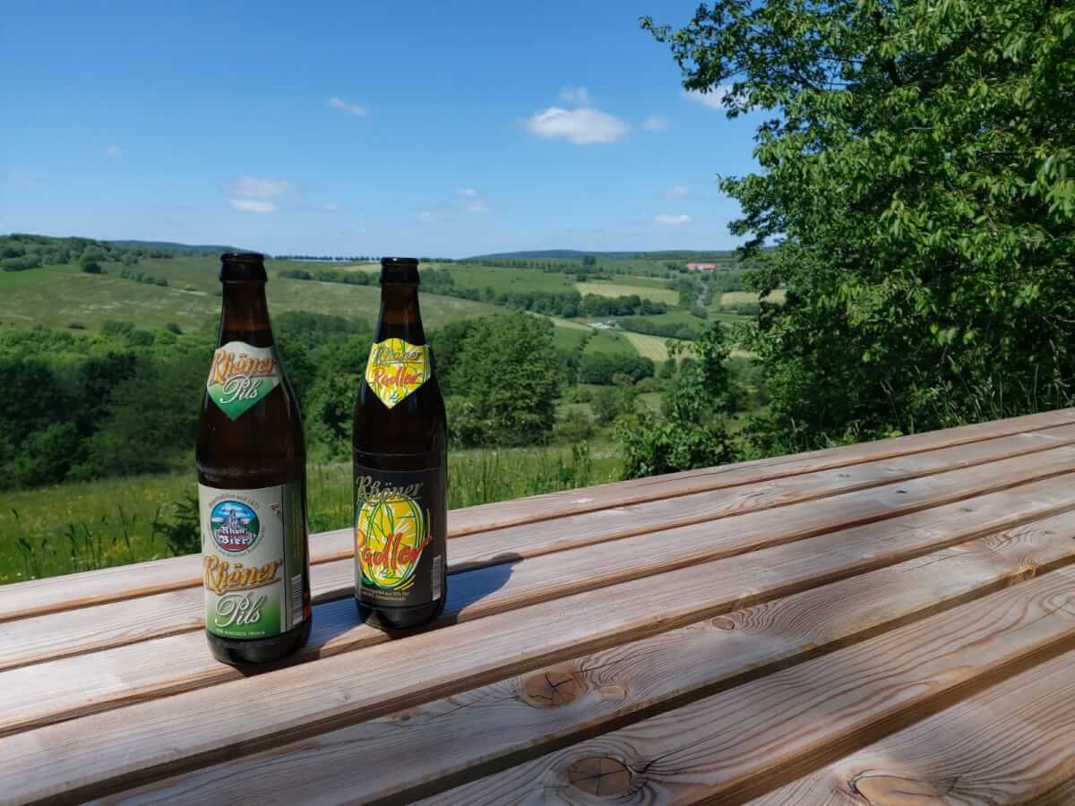 Der Zubringer des Hochrhöners bringt uns kurz hinter Kaltensundheim oberhalb von Mittelsdorf wieder zurück auf unsere Route. Hinaus aus dem kleinen Tal führt uns der Weg auf eine Anhöhe mit kleinem Picknickplatz und wunderschöner Aussicht auf die umliegenden Ortschaften und Berge des Feldatals. Sehr weitläufige, landwirtschaftlich genutzte Felder, Hinweisschilder, ehemalige Grenztürme und der Wanderweg auf dem ehemaligen Grenzstreifen lässt hier die Geschichte der innerdeutschen Grenze sehr präsent werden. Klings und Andenhausen lassen wir rechts liegen, steigen oberhalb von Andenhausen aus dem Hochrhöner aus und überqueren die Landesgrenze Thüringen-Hessen. Das Örtchen Theobaldshof ist das Ziel unserer heutigen Tagesetappe und gleichzeitig leider auch das Ende unserer kleinen „Expedition Hochrhöner“.