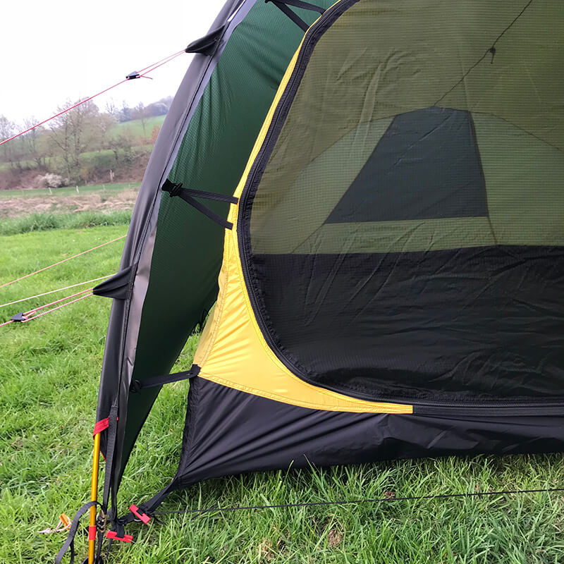 Das Kerlon 1000 Nylongewebe des Außenzelts fühlt sich wirklich extrem dünn an, bietet aber eine Wassersäule von 8.000 mm.
